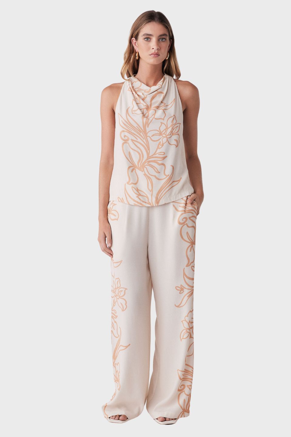 Experience effortless elegance with the Lolita Top, crafted from a natural, lightweight fabric featuring an exclusive print. Its refined halter neckline and delicate pleat detailing enhance a graceful silhouette, while the button closure at the back adds a polished finish. Mindfully created with care, this hip-length piece blends sophistication with comfort for a timeless wardrobe essential.