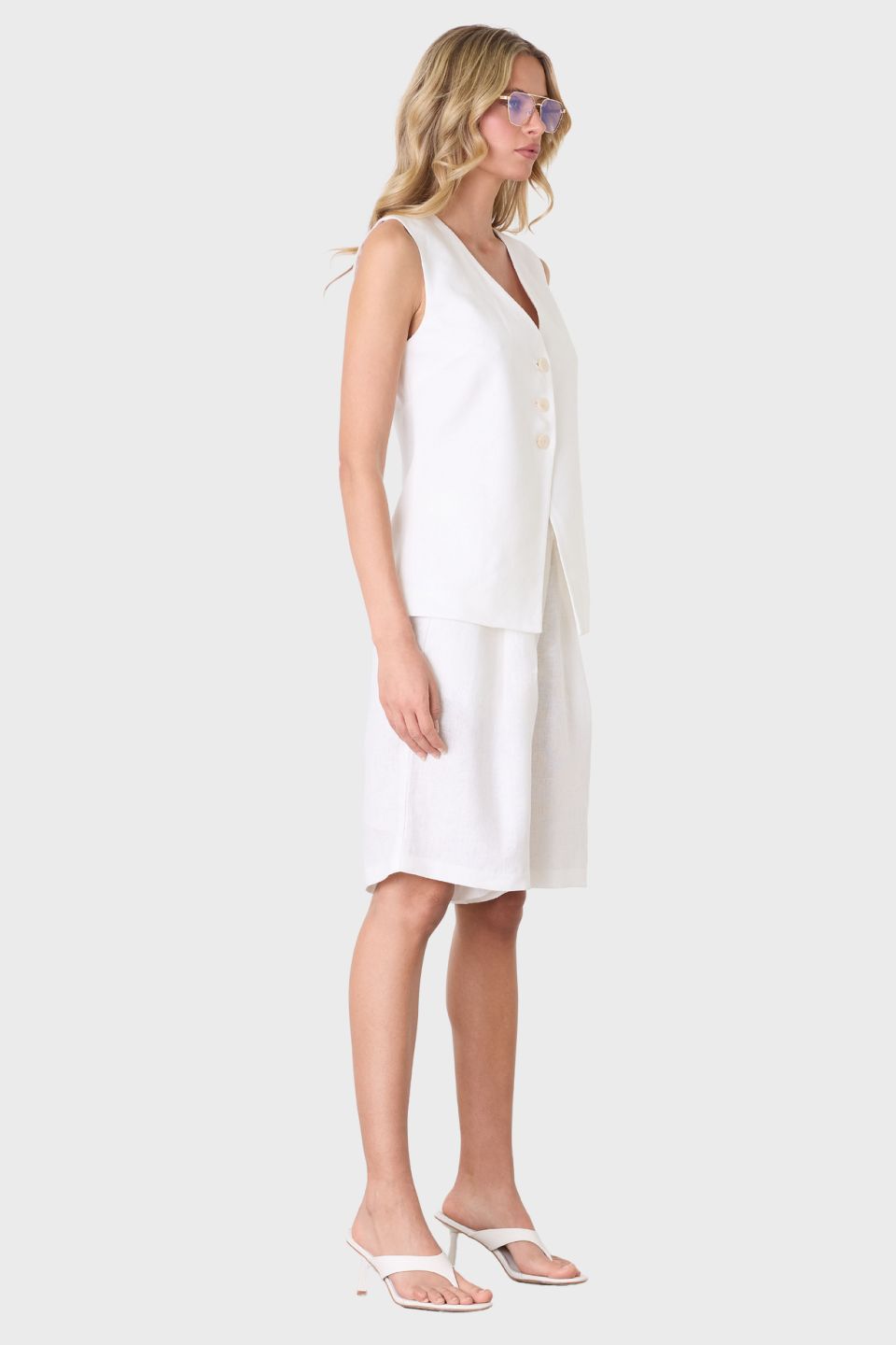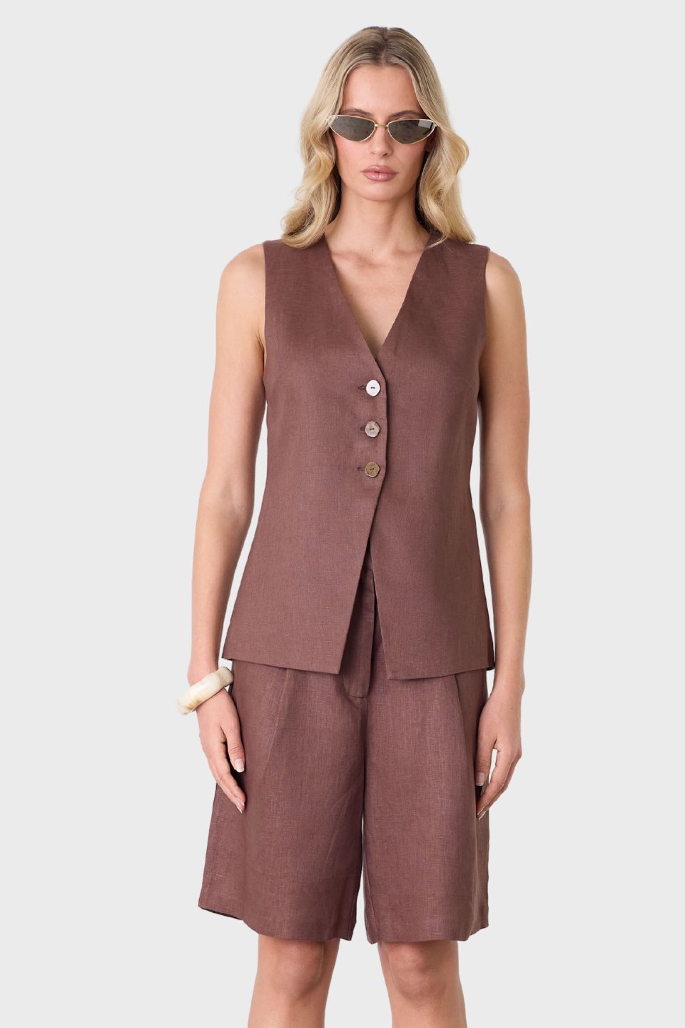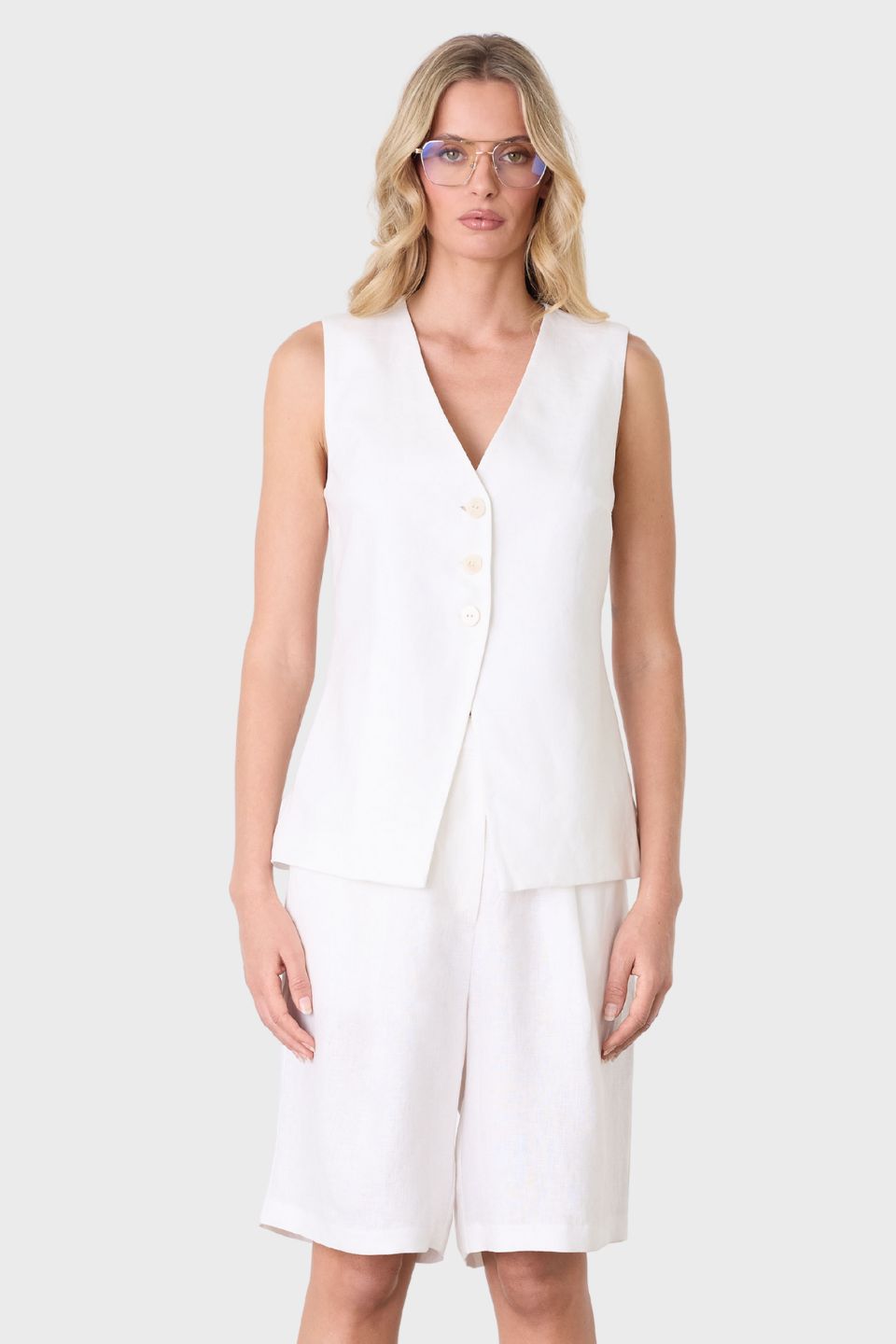 The Marseille Vest Top combines effortless elegance with thoughtful design. Crafted from natural lightweight fabric, this hip-length piece features a functional center-front button opening for versatile styling. Mindfully created with quality and sustainability in mind, it's the perfect layering essential or standalone piece for warm-weather wardrobes.