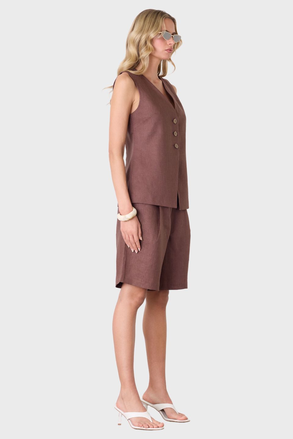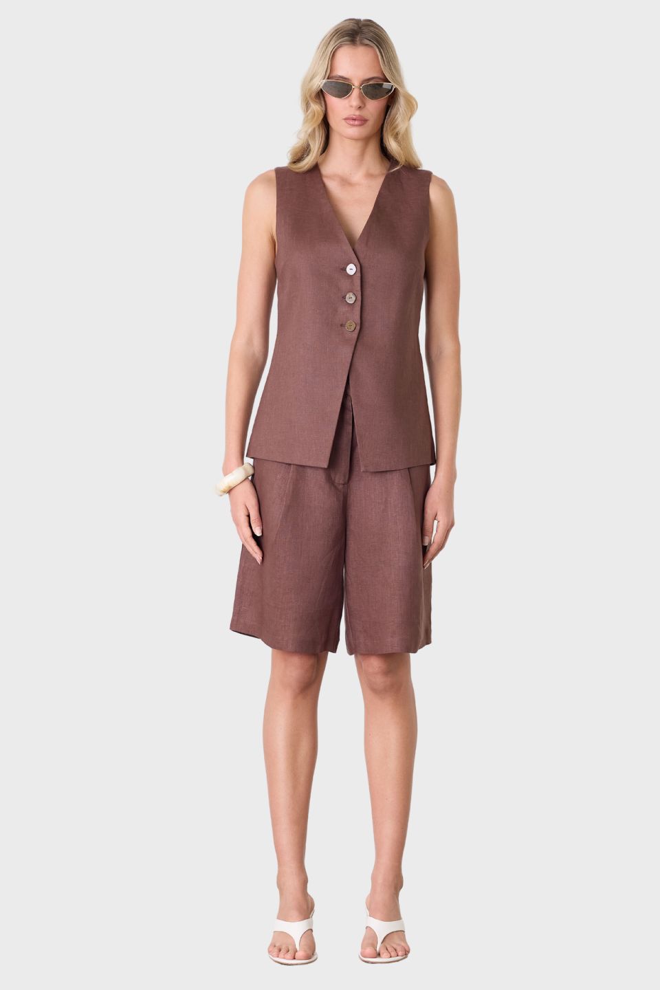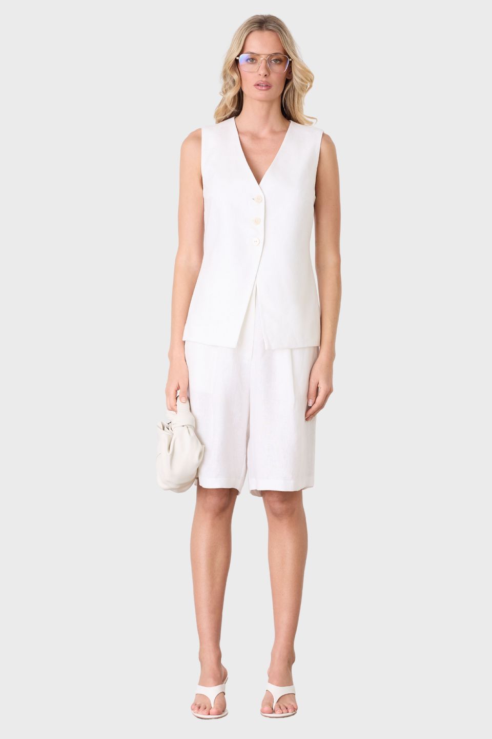 The Marseille Vest Top combines effortless elegance with thoughtful design. Crafted from natural lightweight fabric, this hip-length piece features a functional center-front button opening for versatile styling. Mindfully created with quality and sustainability in mind, it's the perfect layering essential or standalone piece for warm-weather wardrobes.
