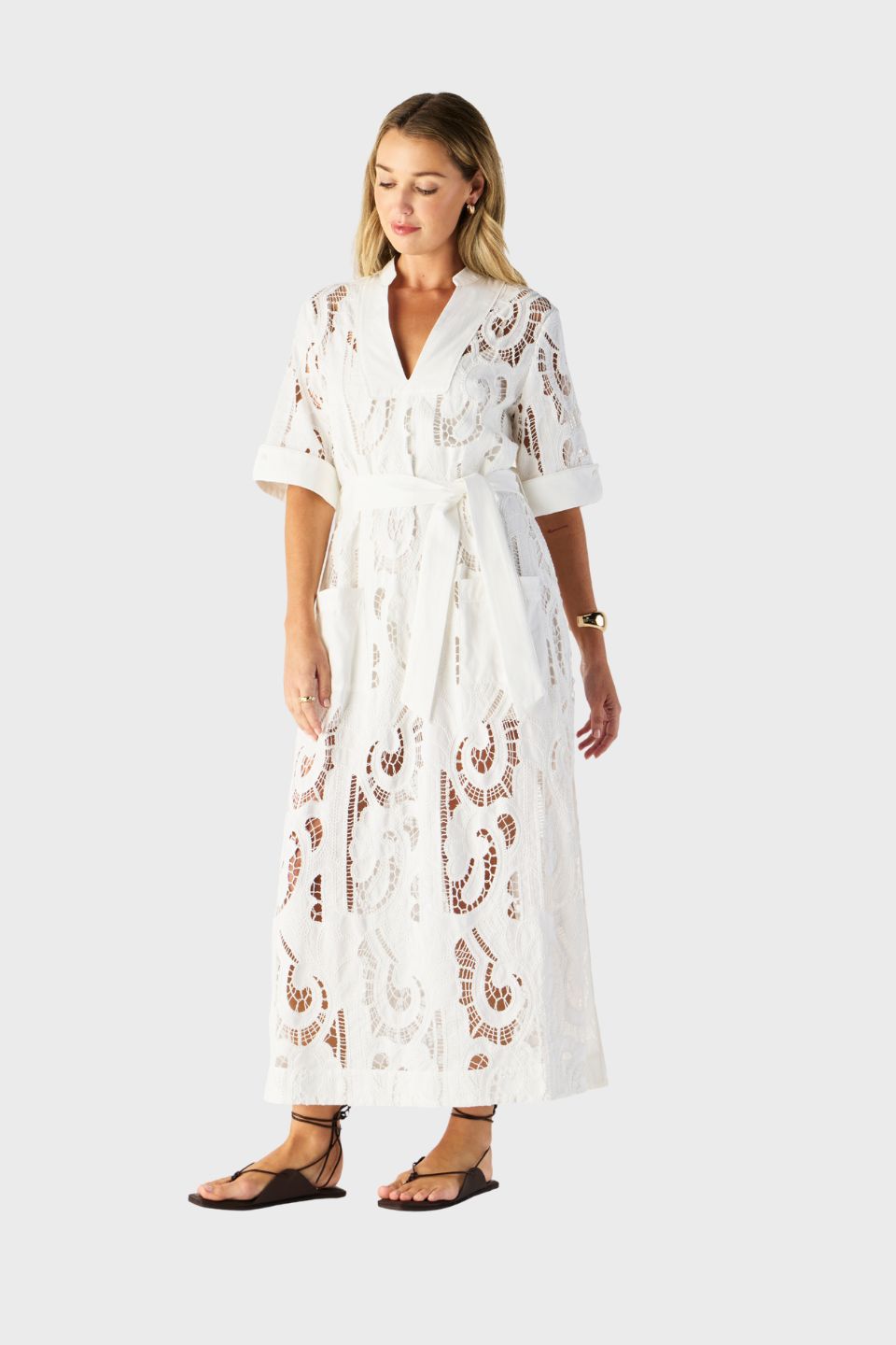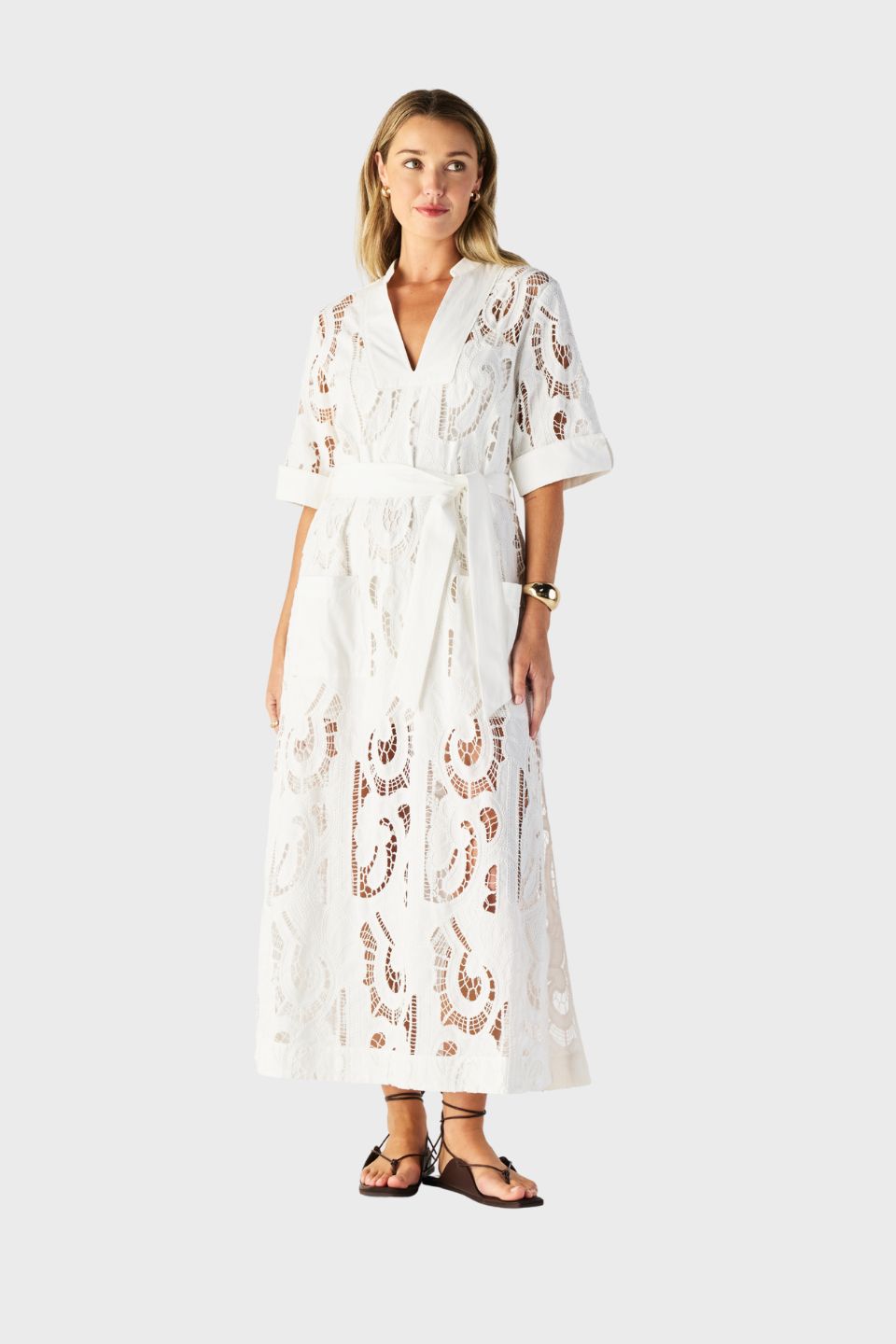 Hot summer days call for easy-wearing chic – the Marbella Shift Dress delivers in spades. Cut from white or cornflower blue cotton and finished with embroidered details, it offers a relaxed fit and features a V neckline, half-length sleeves and A-line skirt that falls to a midi length. Sleek sneakers and barely-there sandals make the perfect match for work, weekends and holidays.