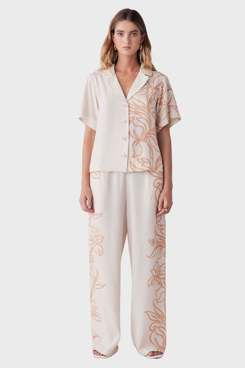 The Lolita Pant offers a relaxed fit crafted from lightweight fabric, ensuring comfort throughout the day. Designed exclusively to complement the Lolita Shirt, its unique print adds a refined touch to your wardrobe. Perfect for sophisticated styling, this pant combines ease and elegance with effortless coordination.