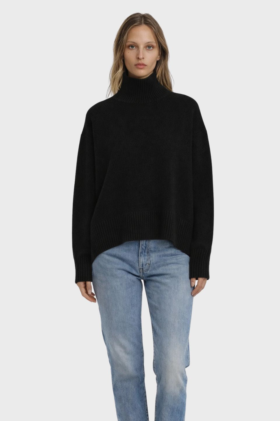 The Tiber Chunky Hi-Lo Hem Polo combines luxury comfort with contemporary style. Crafted from a premium blend of 90% Merino Wool and 10% Cashmere, this piece delivers softness and warmth without bulk. The relaxed, flattering silhouette features long sleeves with ribbed crew neck, cuffs, and hem for a polished finish. The distinctive hi-lo hem creates modern movement and visual interest, making it effortlessly versatile for layering or wearing solo. Perfect for those seeking elevated everyday wear.