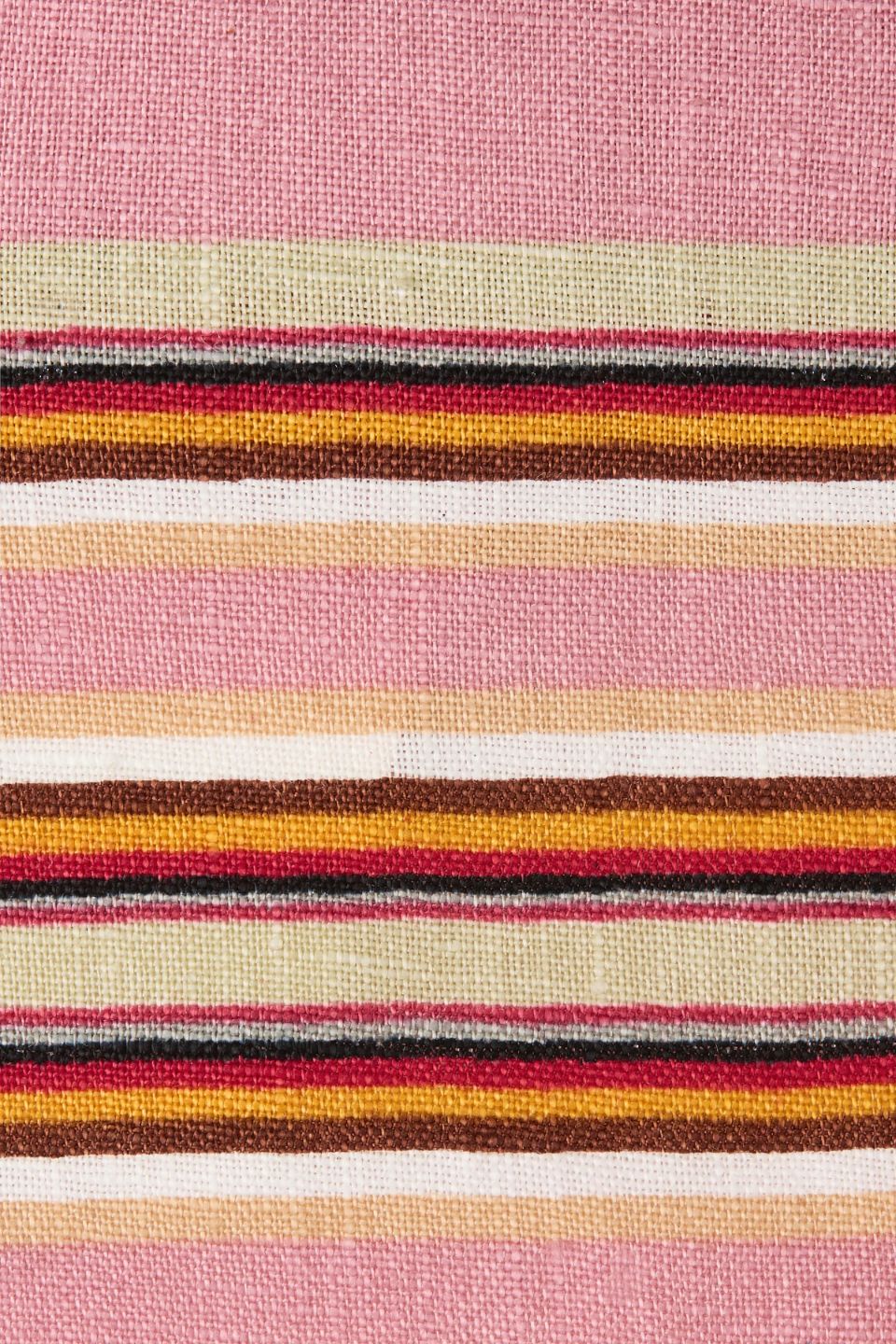 A vacation-inspired maxi dress, designed from a signature true knitwear fabrication in a warm multi-colour stripe, bringing in tones of mauve, olive and chocolate brown. Featuring a halter neckline with an adjustable tie and a folded band detail across the bust, it is fitted through the bodice before falling into a soft, straight skirt. Offering lightweight, summer appeal style with a simple sandal for day to night occasions.