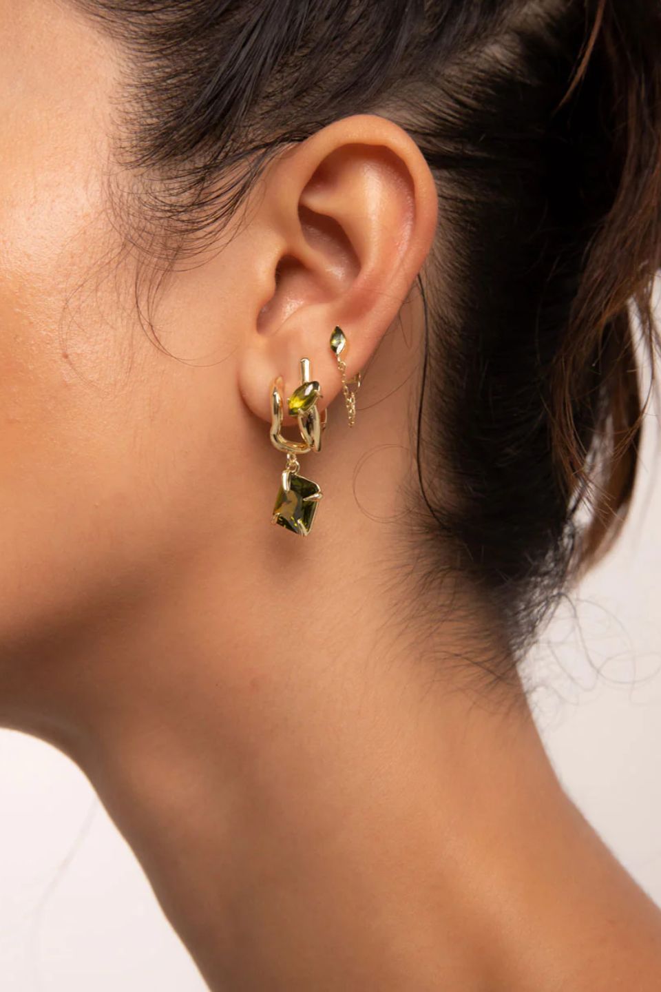 Redefine your everyday style with these modern charm earrings. The Wave Huggies with peridot gemstones will elevate any look with their wave-shaped huggie earring design and the added peridot gemstones in a custom claw setting will add an edgy touch to your look.