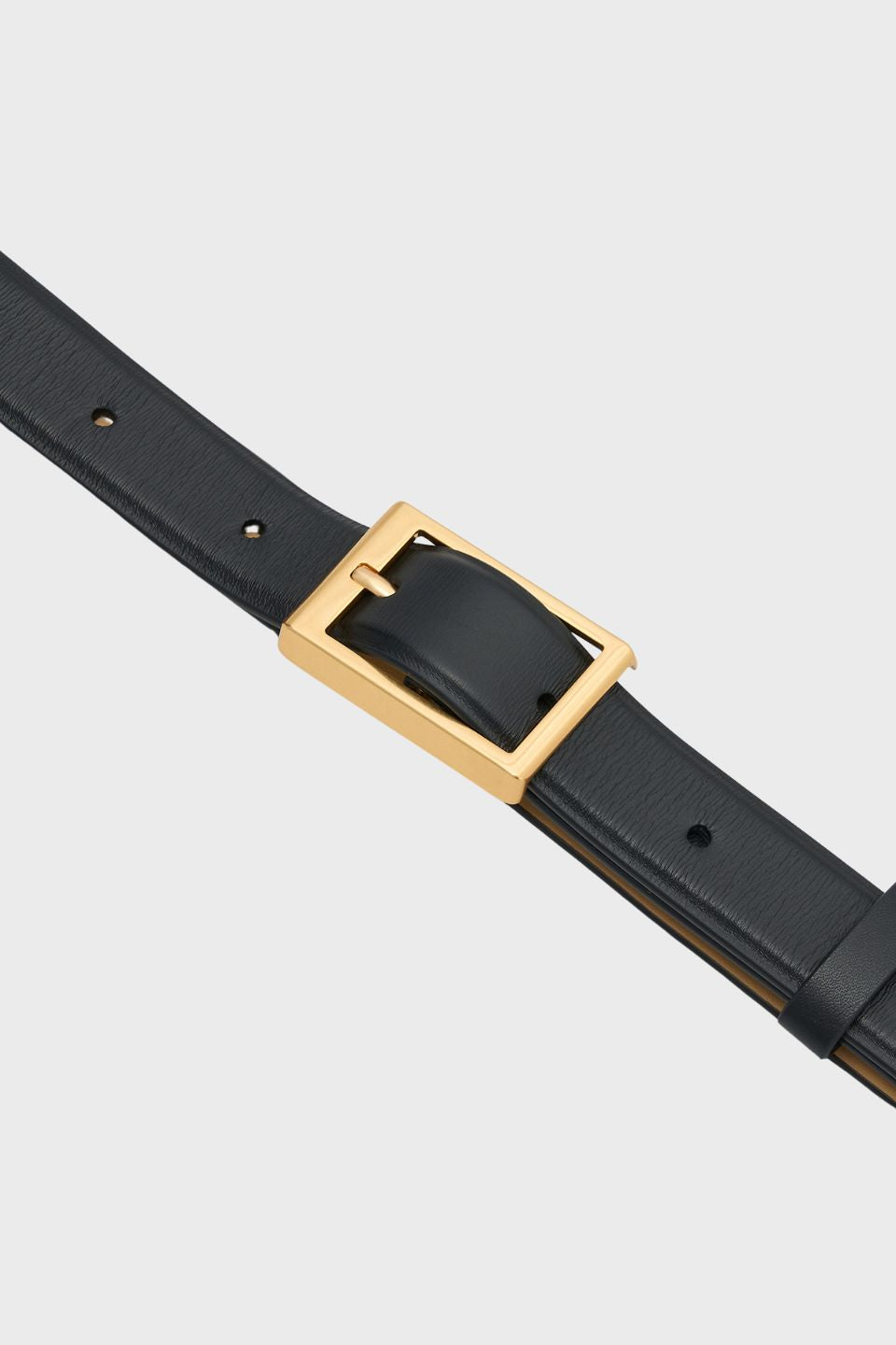 CAMILLA AND MARC Sonny black leather belt with square gold buckle.