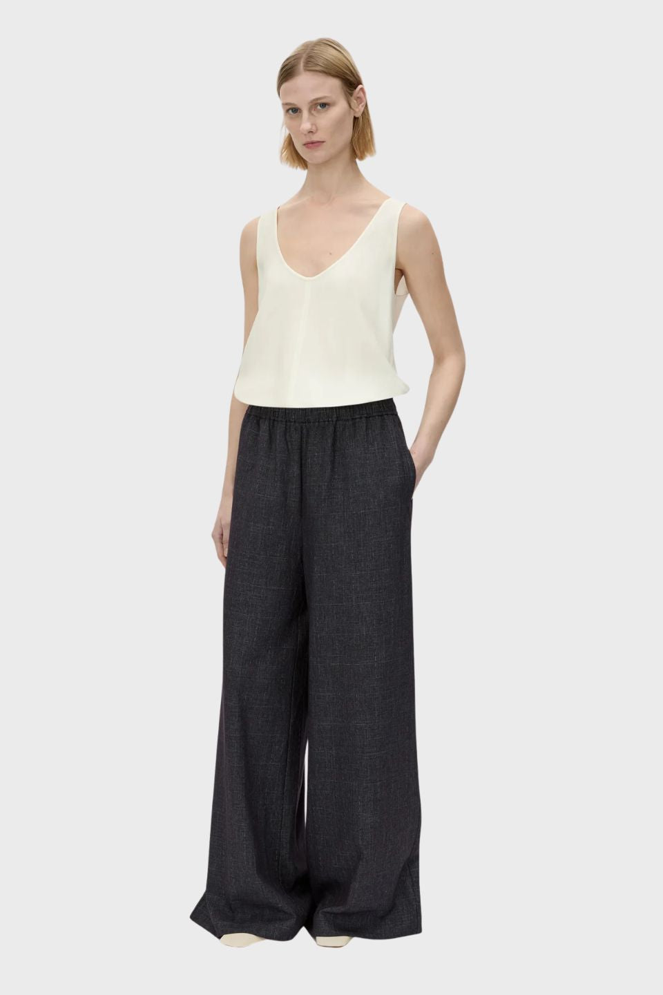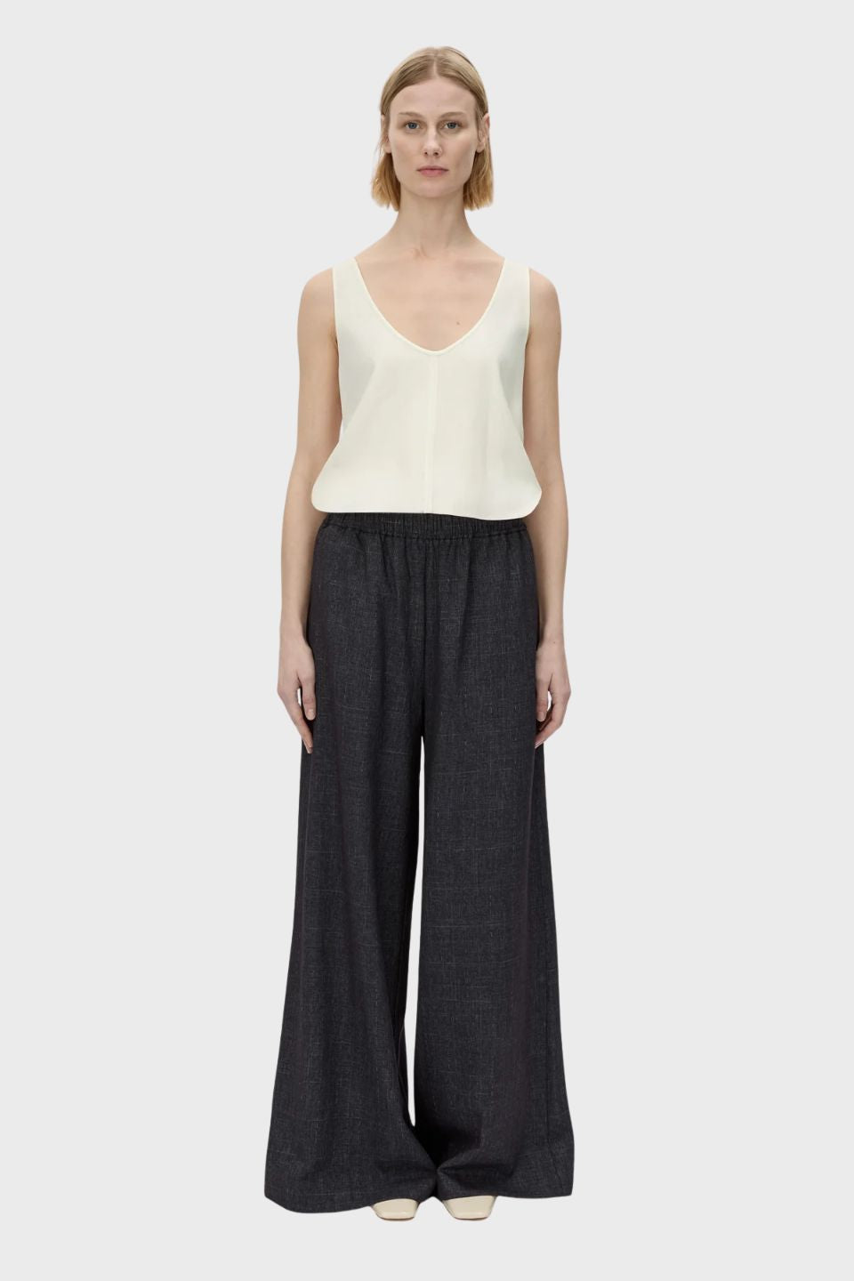 CAMILLA AND MARC Antony soft suiting pull-on palazzo pant. Mid-waisted with concealed inseam pockets and pin tuck down the front leg. Recycled polyester twill lining.