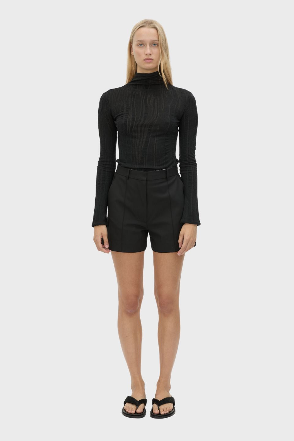 CAMILLA AND MARC Nova textured knit long sleeve skivvy top in cream. Blind baby locked hem. Shoulder seam invisible zip closure.